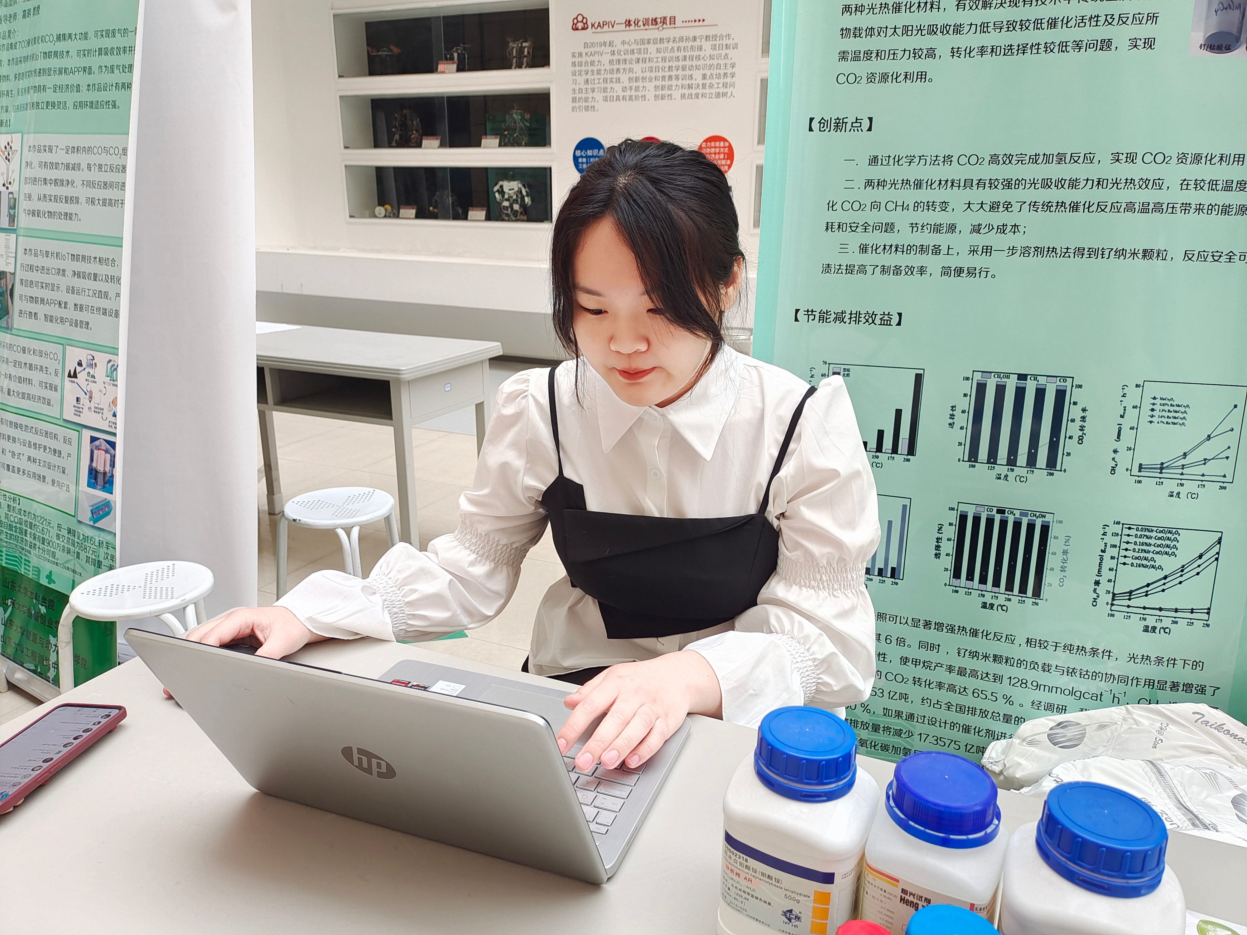 “耳闻之不如目见之,目见之不如足践之”,社会实践也是闫诗瑶大学生活中不可或缺的重要组成部分。“被需要是一种幸福”,在鲁喀支教志愿服务活动中,她为民族地区学生提供一对一志愿服务;在蓝信封乡村留守儿童的书信笔友项目中,她化身书信大使与乡村儿童进行一对一书信交流;在山东省科技馆志愿服务活动中,她为千余名游客答疑解惑。这些志愿活动让她走出校园,学会如何快速有效地与他人沟通,在奉献中成长,实现人生的价值。“行之力则知愈进,知之深则行愈达”,在进行科研实践项目时,从选题开始,她就反复斟酌,既要考虑实用性和创新性,又要结合自身兴趣和实验条件。为此,她查阅大量文献,分析研究热点与空白,最终敲定研究选题。实验过程中,结果多次不如预期,为快速破解难题,她进行了大量的中英文献阅读,在办公室与导师进行了多次共同交流,虚心向师兄师姐请教,与队友无数次沟通探讨,不断完善实验方案。功夫不负有心人,最终,她带领团队成员获得校级优秀团队称号。大三和大四学年,闫诗瑶积极参与学院组织的各类企业实习,在一次次与前沿高科技材料近距离接触中,在与各参观企业的负责人交流的过程中,她再一次对自身专业有了深切感悟,也再一次对未来自身在材料领域的发展追求进行了新的审视与考量。“作为新时代的科研人,我希望我能努力扎实基础,练就一身本领,在未来有机会为国家的科技发展贡献属于自己的力量。”